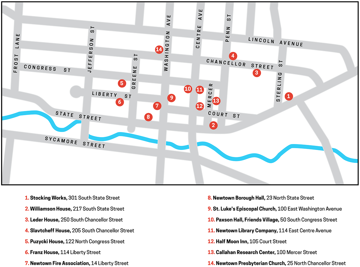 During the second annual Newtown Wine Walk, you’ll sample over 15 different wines at Newtown Borough stops, including the historic Half-Moon Inn (Court Inn).