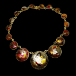 Abra Couture, Inc. Vintage repurposed/recycled gemstones, found objects, resin and cotton balls wrapped in wire and sculpted into collars or woven into chains. By Abra Gorby, Washington Crossing, PA Website |