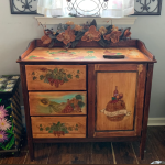 Heirlooms I repair antiques and add custom artwork on them by a wood burner and pigments. Most of the antiques I work on are smaller pieces; writing desks, art boxes, and small chests. By Karen Hall, Fairless Hills, PA |